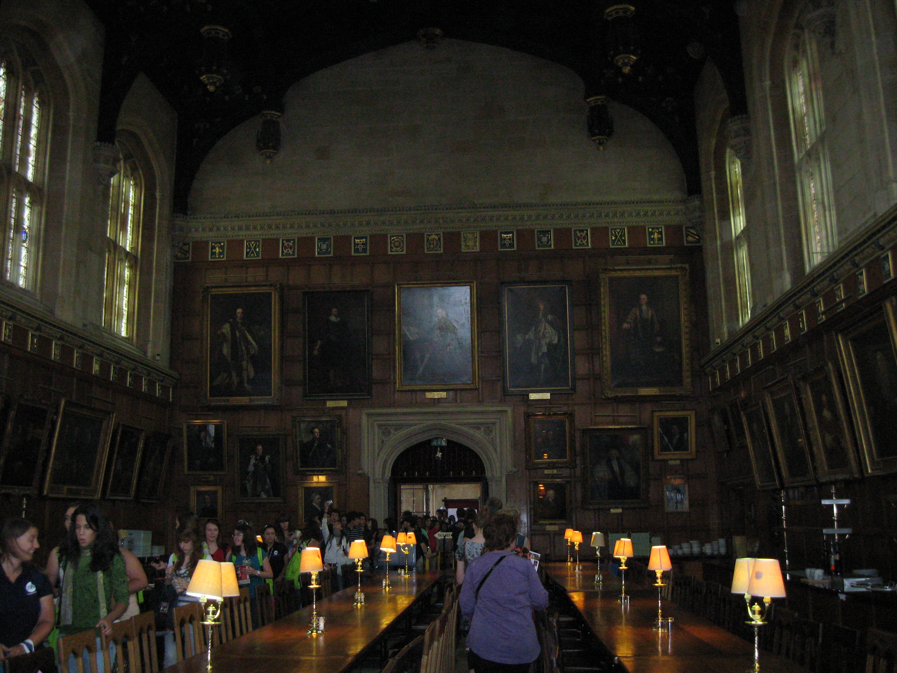 Well, I promised and I will deliver. This is a photo inside the dining hall of Christ Church College, Oxford. That is answer number one. Answer number two will be much more familiar to fantasy readers. This is the dining room portrayed as Hogwarts in the Harry Potter movies. http://harrypotter.wikia.com/wiki/Great_Hall