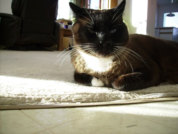 Frank, the snowshoe got so ticked this afternoon that he felt the need to beat up Ollie the fluffy hoe, who he usually naps with. He managed to look a trifle guilty when I yelled at him and desisted immediately. Order was soon restored. I have to wonder how a cat apology is couched?